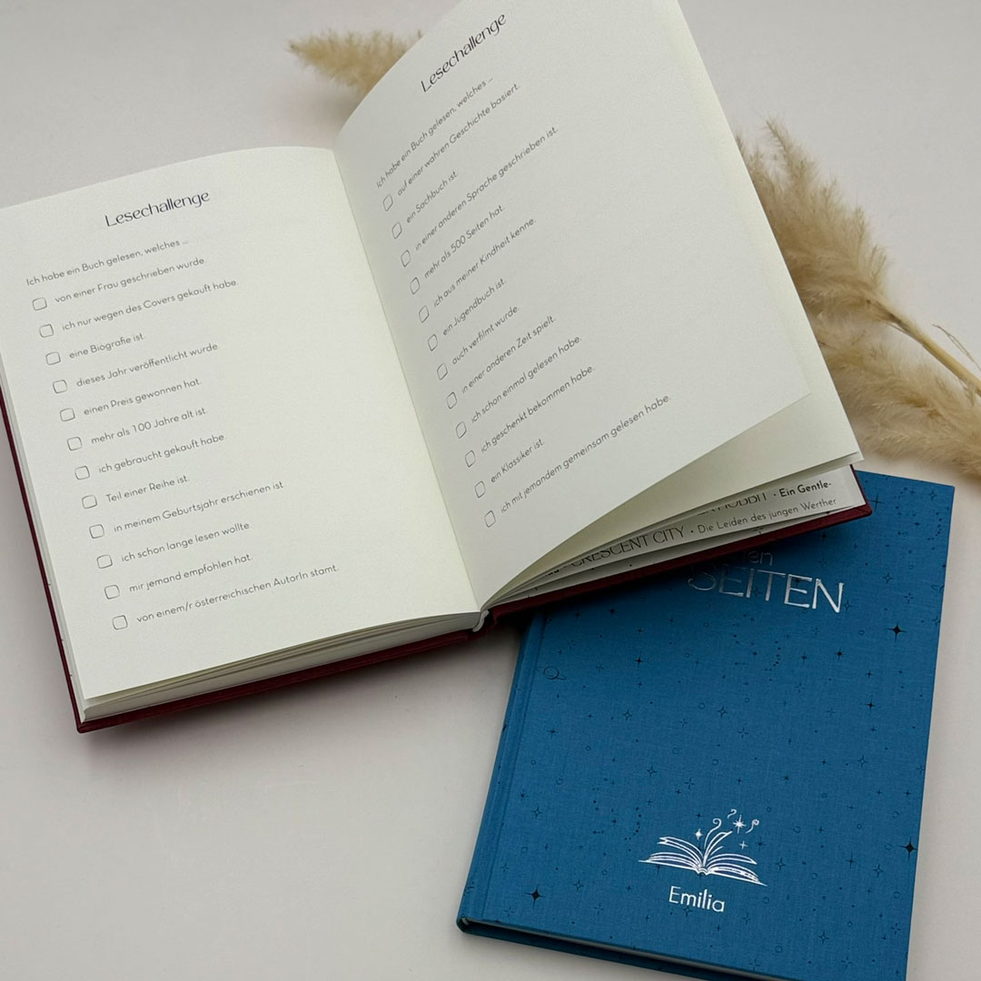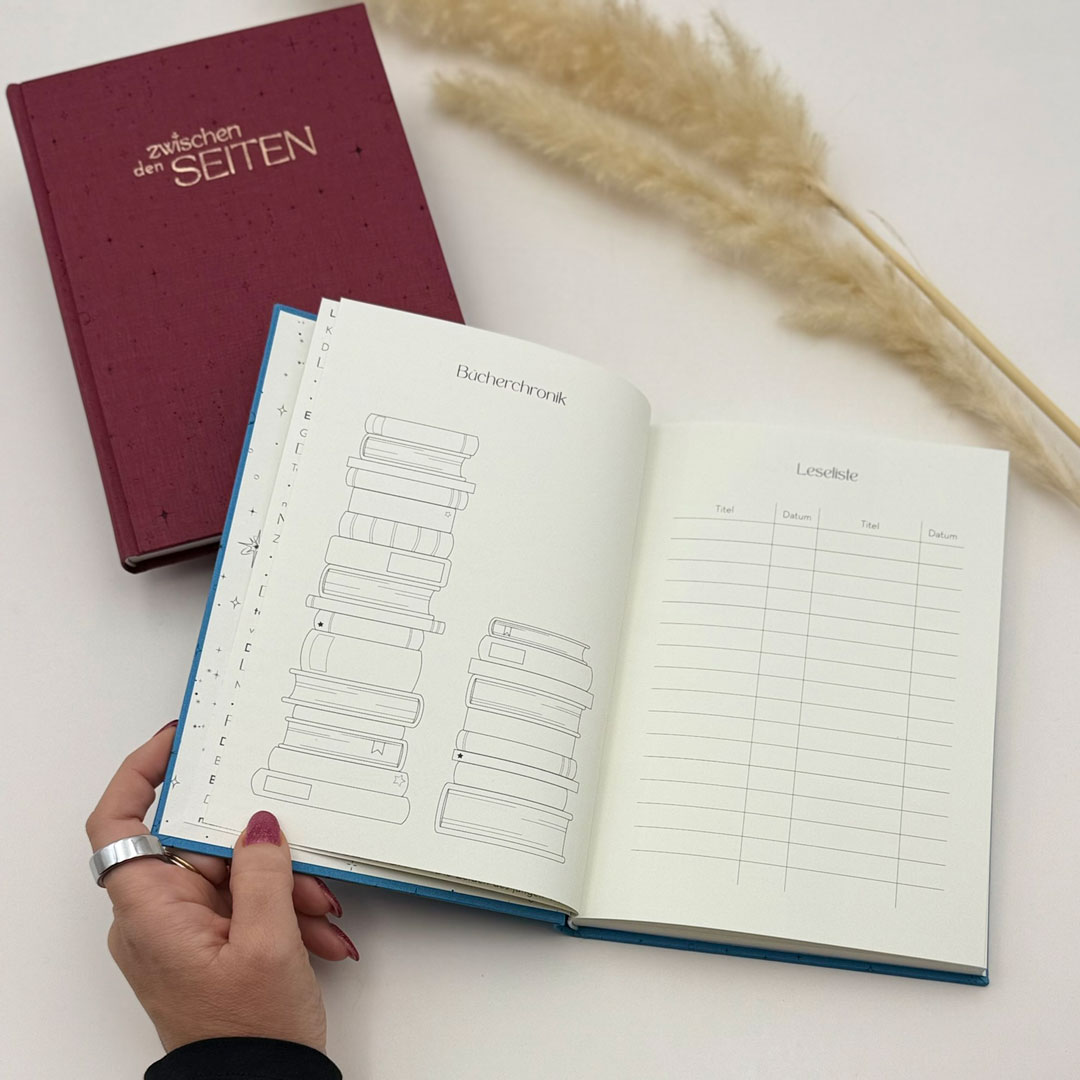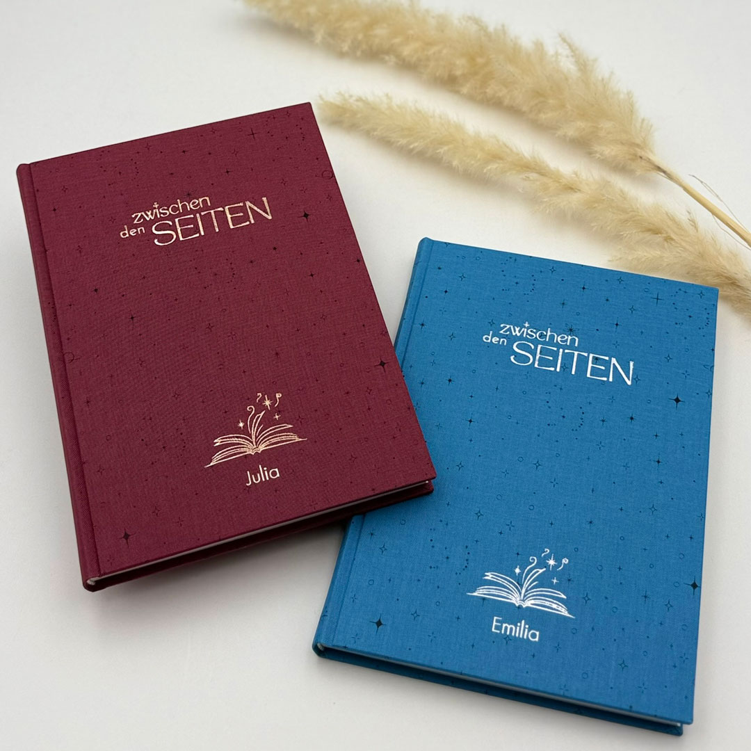 zwischen den Seiten – Buchjournal & Lesetagebuch aus Leinen, personalisierbar