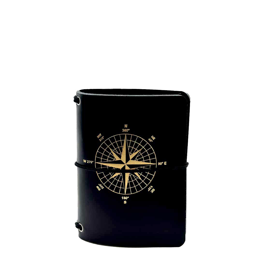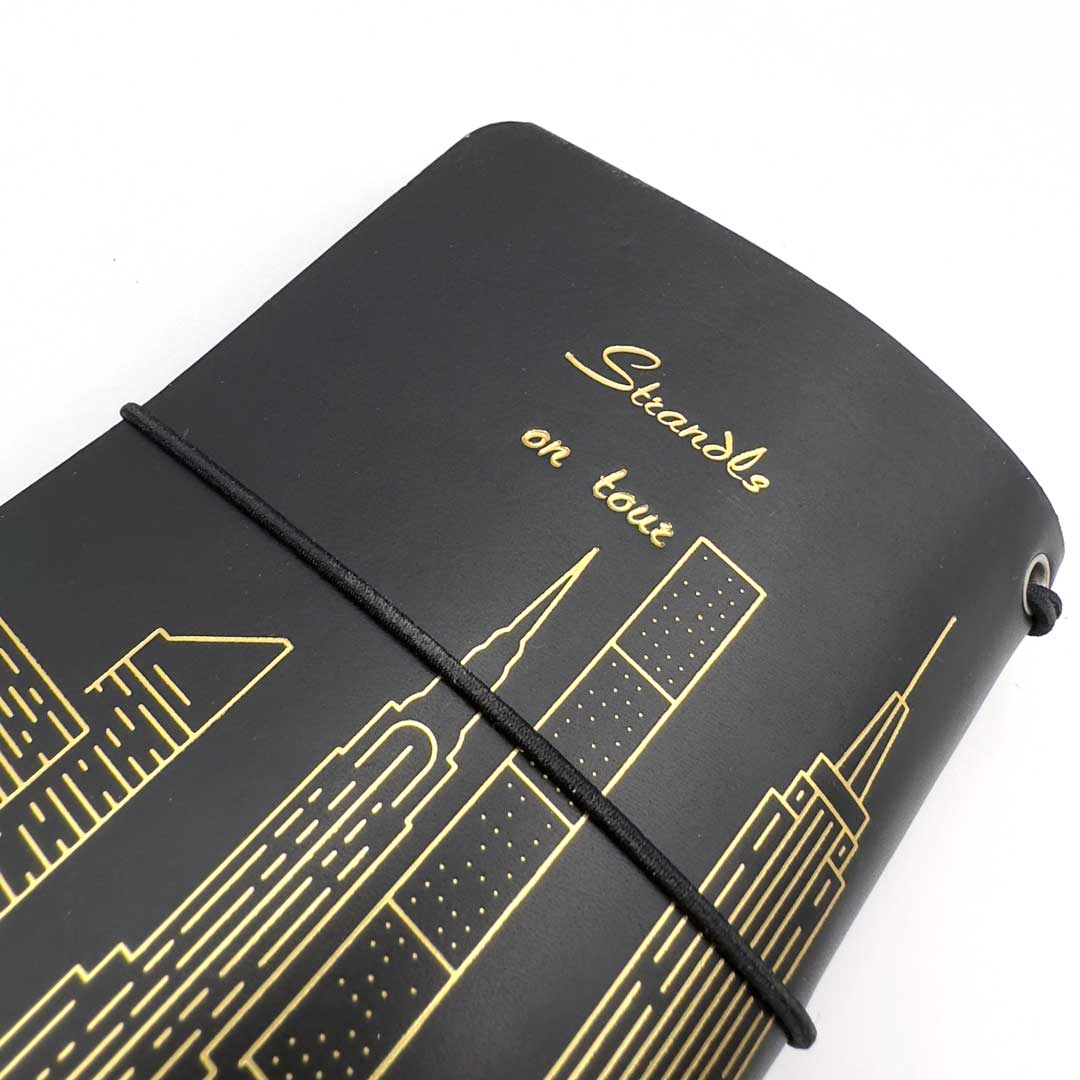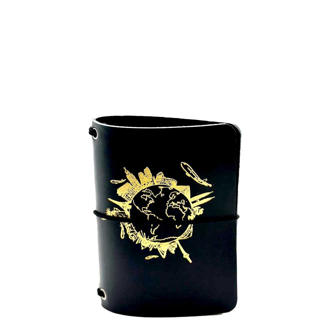 • hochwertiges Leder, schwarz mit goldener Prägung.
