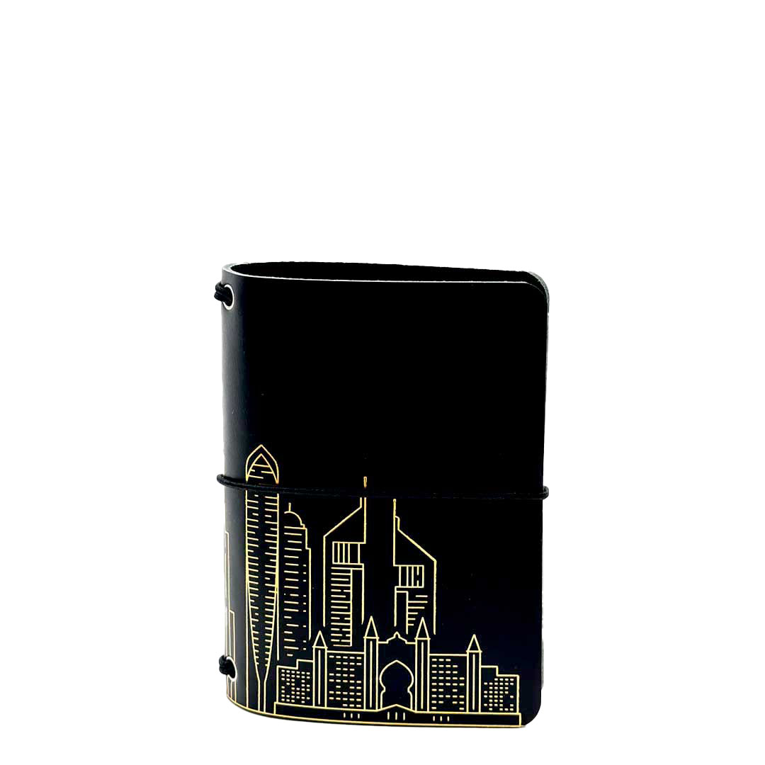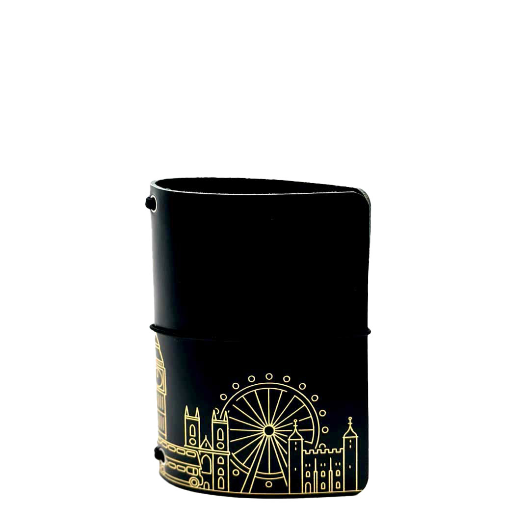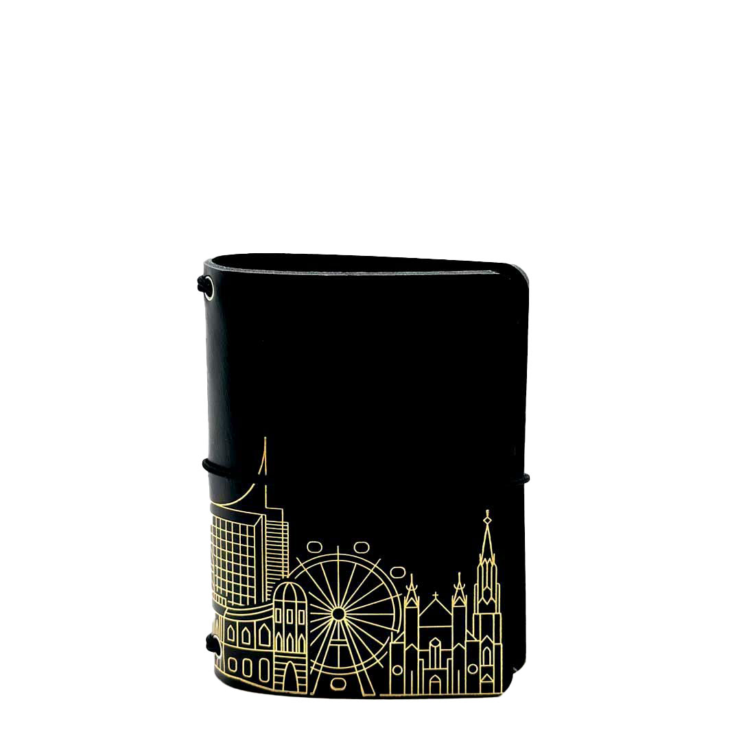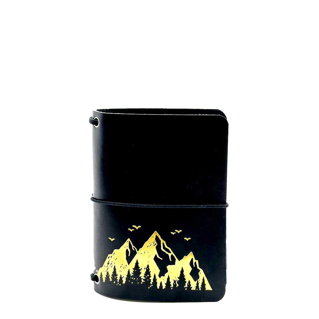 • hochwertiges Leder, schwarz mit goldener Prägung.
